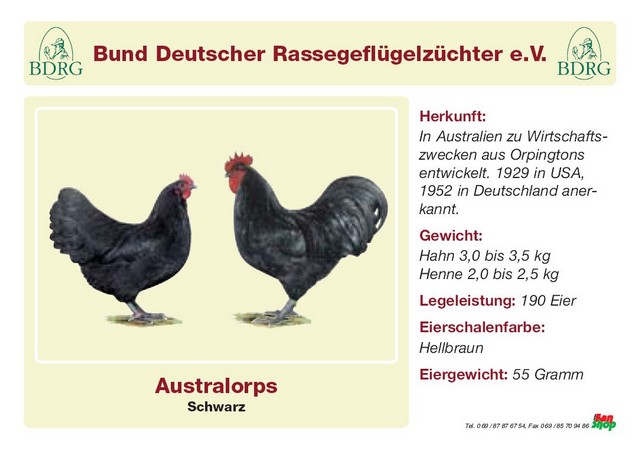 Rassetafel vom BDRG (Bund Deutscher Rassegeflügelzüchter)