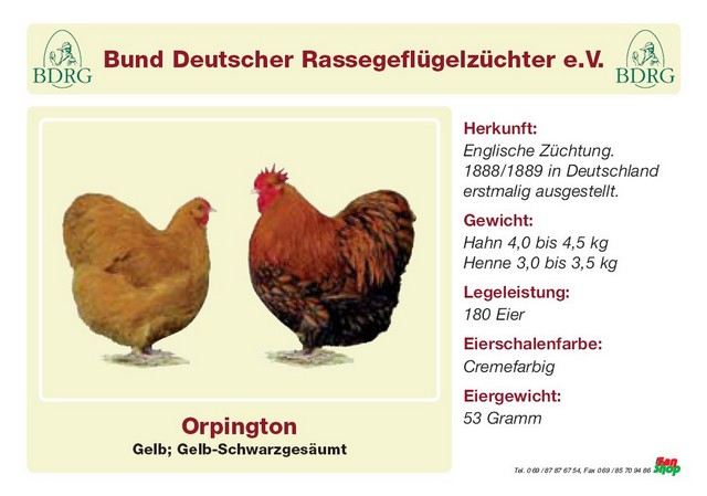 Rassetafel vom BDRG (Bund Deutscher Rassegeflügelzüchter)
