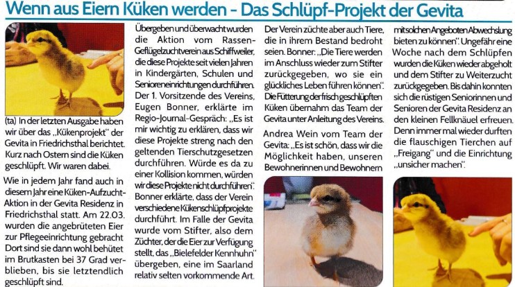 Wir engagieren uns in sozialen Einrichtungen und führen in Kitas, Kindergärten, Schulen, Behinderteneinrichtungen, Senioreneinrichtungen usw. Kükenschlupfprojekte durch.